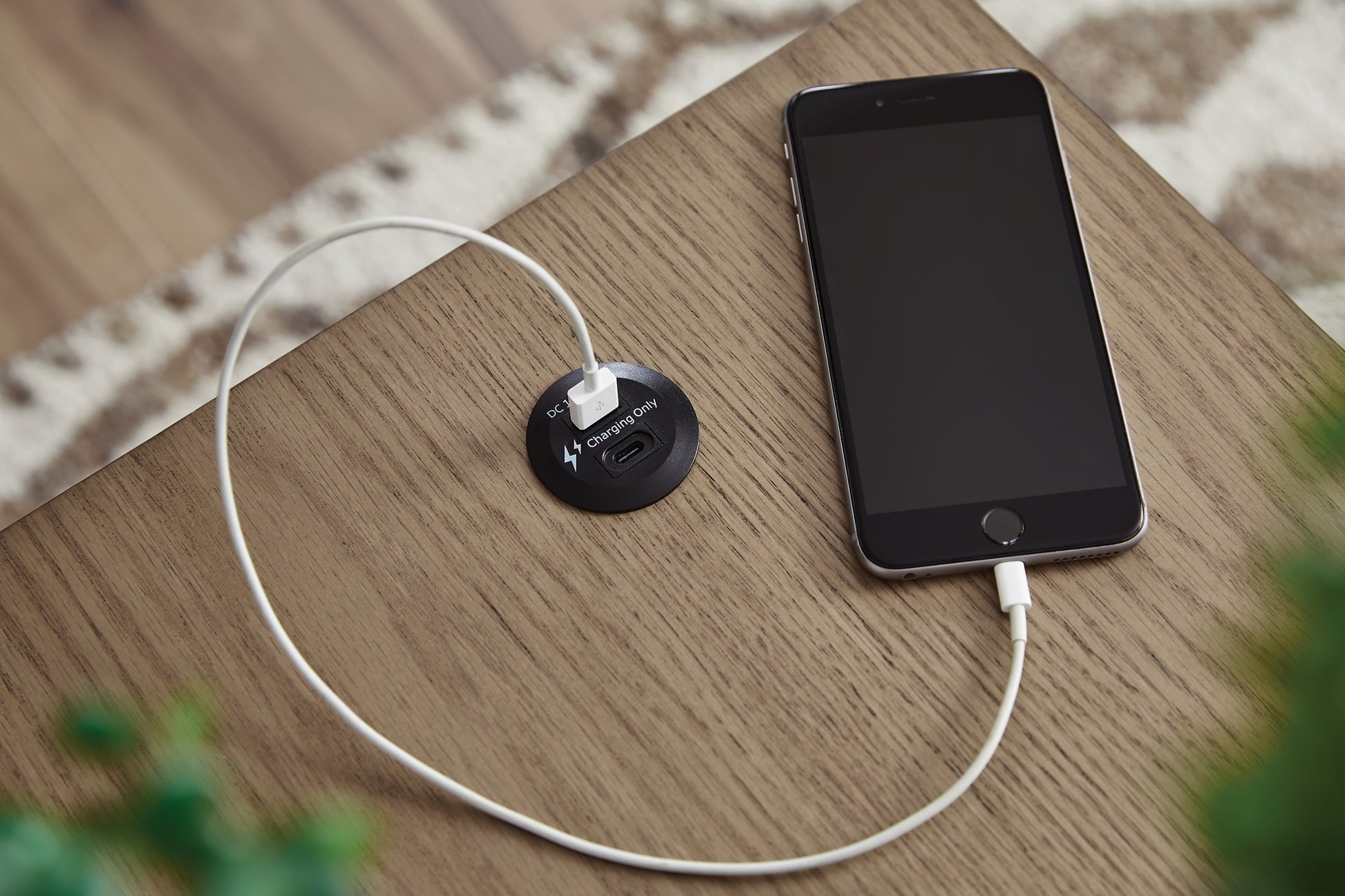 | Details | Made with hardwood solids, veneers and engineered wood, Rich light brown wood grain finish, Integrated drawer handles, 3 curved-front drawers, USB-A and USB-C charging, Power cord included; UL Listed | |