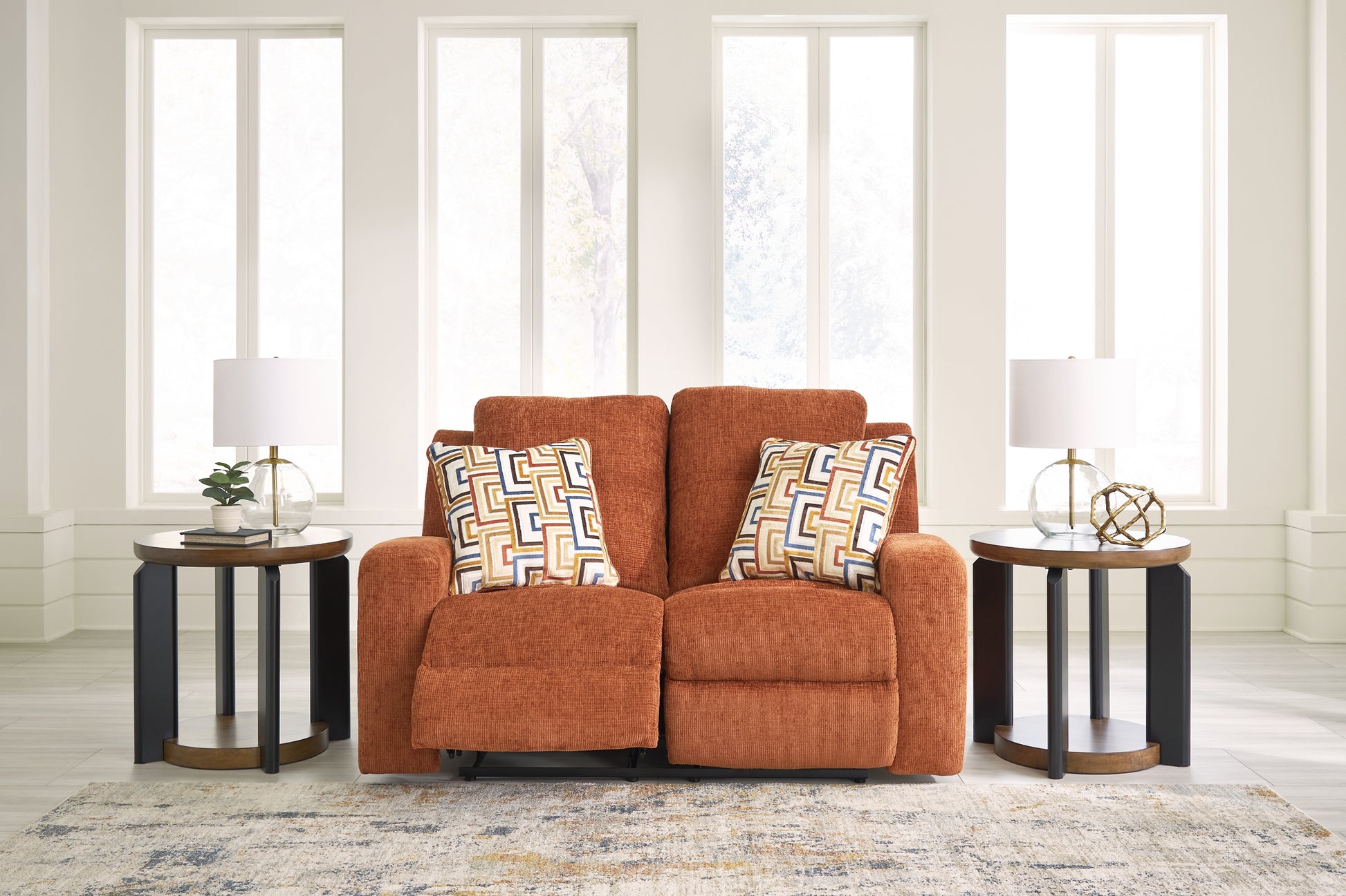 This reclining loveseat invites you to a luxuriously soft lounging experience. The chic hue fits right in with contemporary color palettes. A tufted back keeps the look right on trend. Balancing style and function, its pull tab reclining effortlessly takes you to relaxation mode.