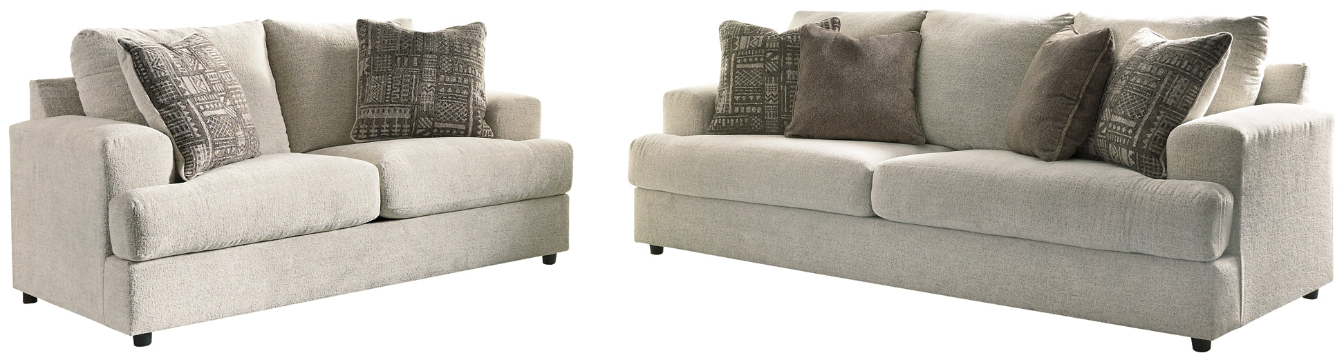 Flaunting a trendsetting silhouette, this sofa and loveseat set puts the contemporary in your contemporary home. Its “three over two” profile eliminates the center seat cushion, giving you elongated plushness and deep seating. And the microfiber fabric satisfies your need for pieces that feel as good as they look. Soft jacquard chenille throw pillows add a splash of geometric pattern and color contrast.