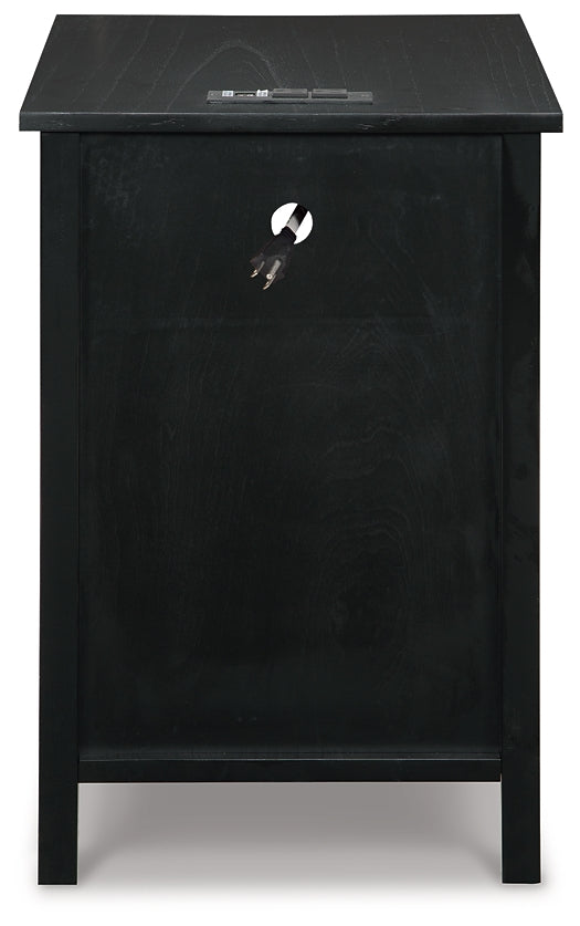 | Details | Made with solid wood, wood veneer and MDF substrate, Black wood tone finish, Table features storage cabinet, open cubby shelf and pull-out tray, 110V power supply with dual USB charging ports, Power cord included; UL Listed, Due to the use of natural materials, some variations may occur, Assembly required | |