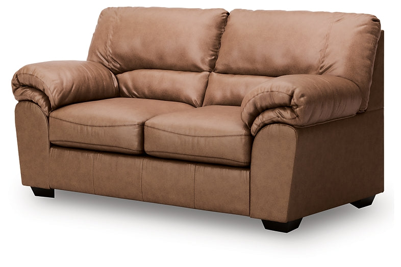 Modern comfort never looked so good. Sporting supremely soft yet durable cushions accented with high-fashion jumbo stitching, this stunning loveseat is the ultimate choice in comfortably cool, contemporary style. Its caramel-hued faux leather indulges with an upscale feel and wows like the real thing.