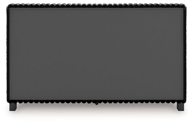 Details | Includes upholstered headboard, footboard, rails and roll slats, Made with engineered wood frames and solid wood components, Polyester upholstery over foam cushioning, Bed does not require additional foundation/box spring; accommodates most zero clearance adjustable bases, Mattress available, sold separately, Minor assembly required | |